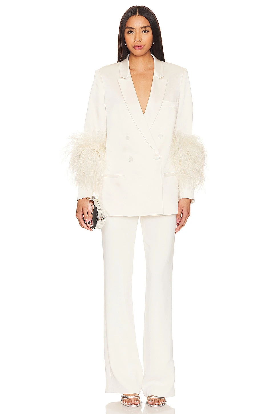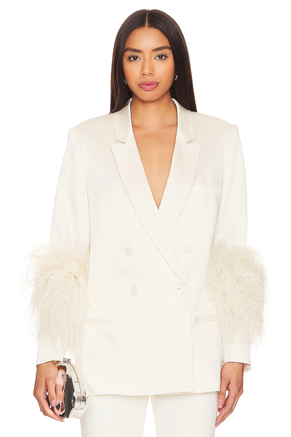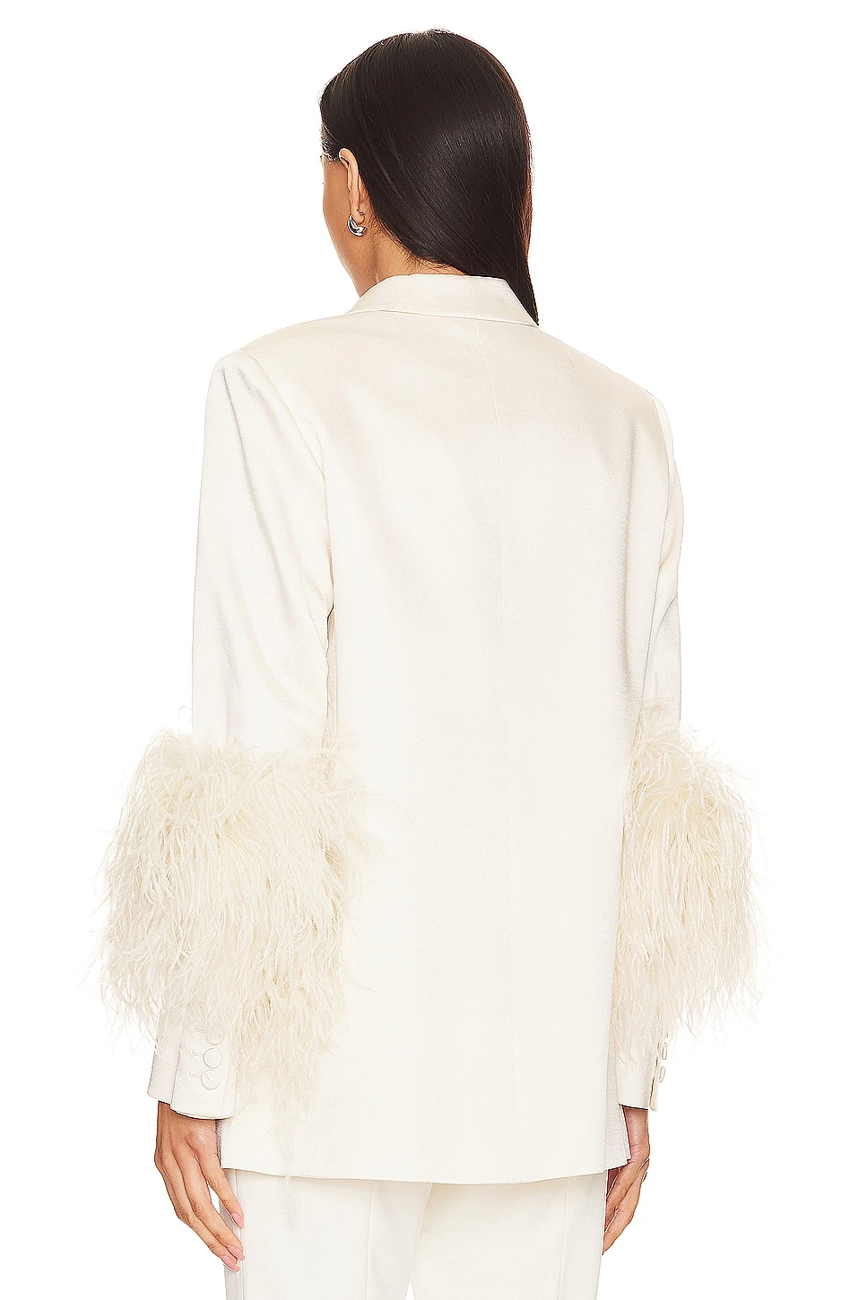 Doubleface Satin Broad Shoulder Blazer W Ostrich Cream