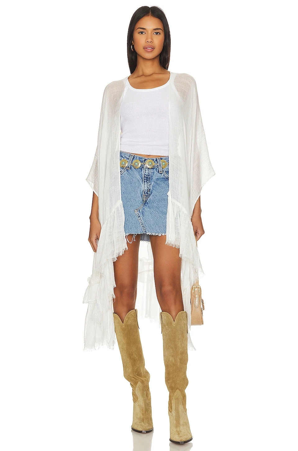 FREE PEOPLE Whisper Washed Ruffle Kimono White Sands