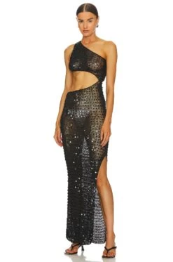 Crochet fabric with allover sequin embellishments and side seam slit - Garment is intentionally sheer, undergarments will show through.