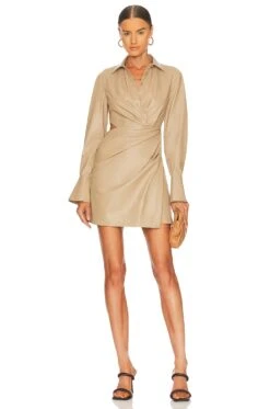 Lo Faux Leather Wrap Mini Dress Nutmeg