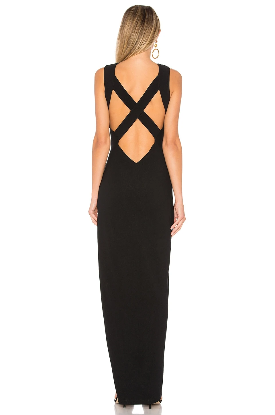 Self: 96% poly, 4% elastane.Lining: 95% poly, 5% elastane. Hand wash cold. Partially lined. Ribbed fabric. Front slit. Criss-cross back detail. Revolve Style No. BTWR-WD322. Manufacturer Style No. BTD157 S18.