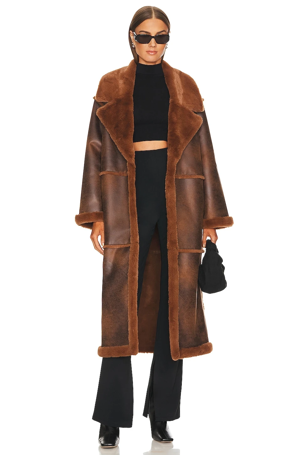 - Faux fur foldover neckline